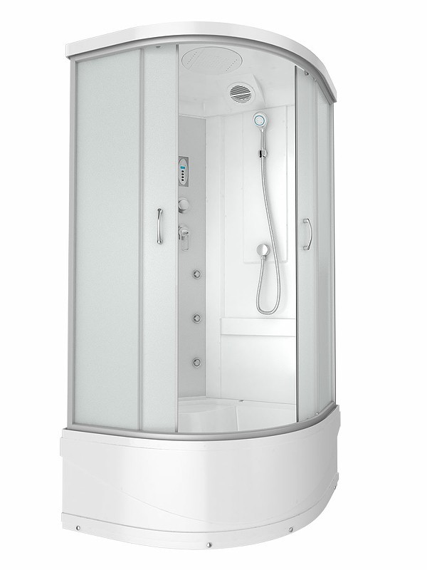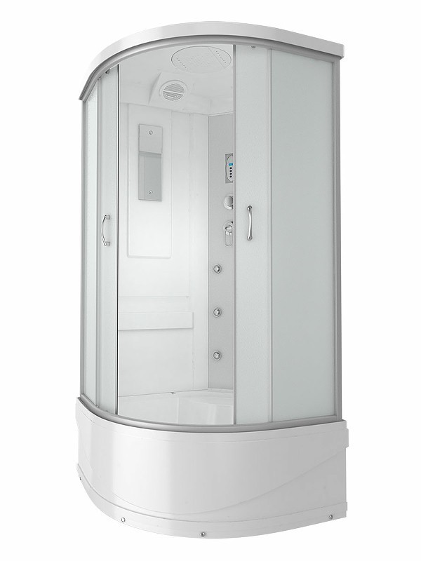 - Оснащение: тропический душ, ручной душ, верхнее освещение, пульт управления, вентиляция, зеркало.