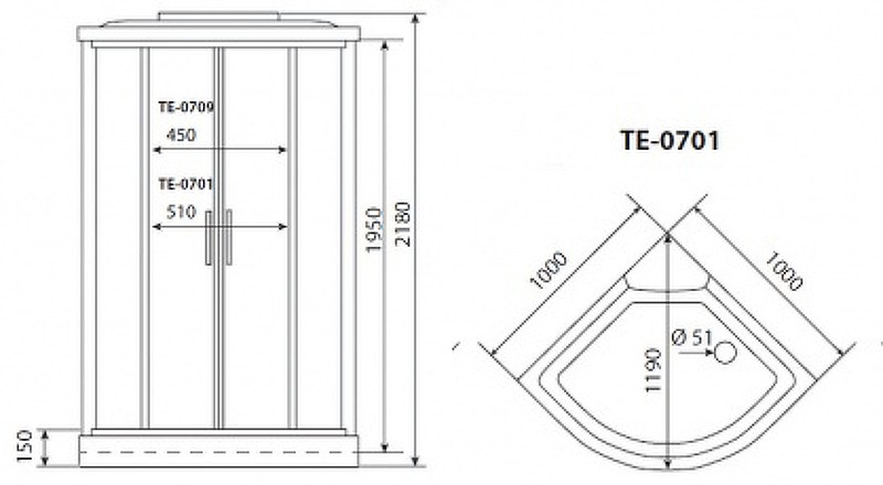 Душевая кабина Timo Eco 100x100 TE-0701 с гидромассажем