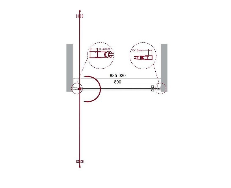 - Регулировка ширины предусмотрена за счет боковых профилей, что позволяет без проблем установить изделие даже при кривизне стен.
