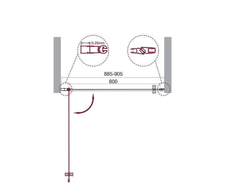 - Регулировка ширины предусмотрена за счет боковых профилей, что позволяет без проблем установить изделие даже при кривизне стен.