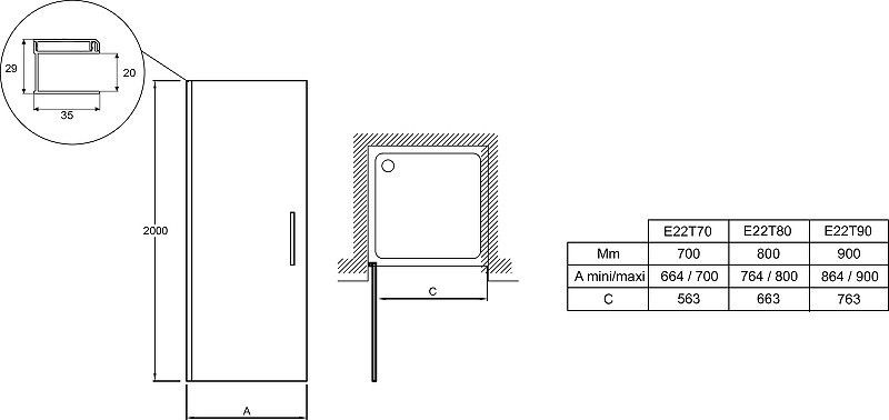Стеклянная душевая дверь в нишу Jacob Delafon Contra 90 E22T90-GA с одной распашной створкой, с большим проемом. Образует широкое душевое пространство. Подходит для людей с ограниченными возможностями.