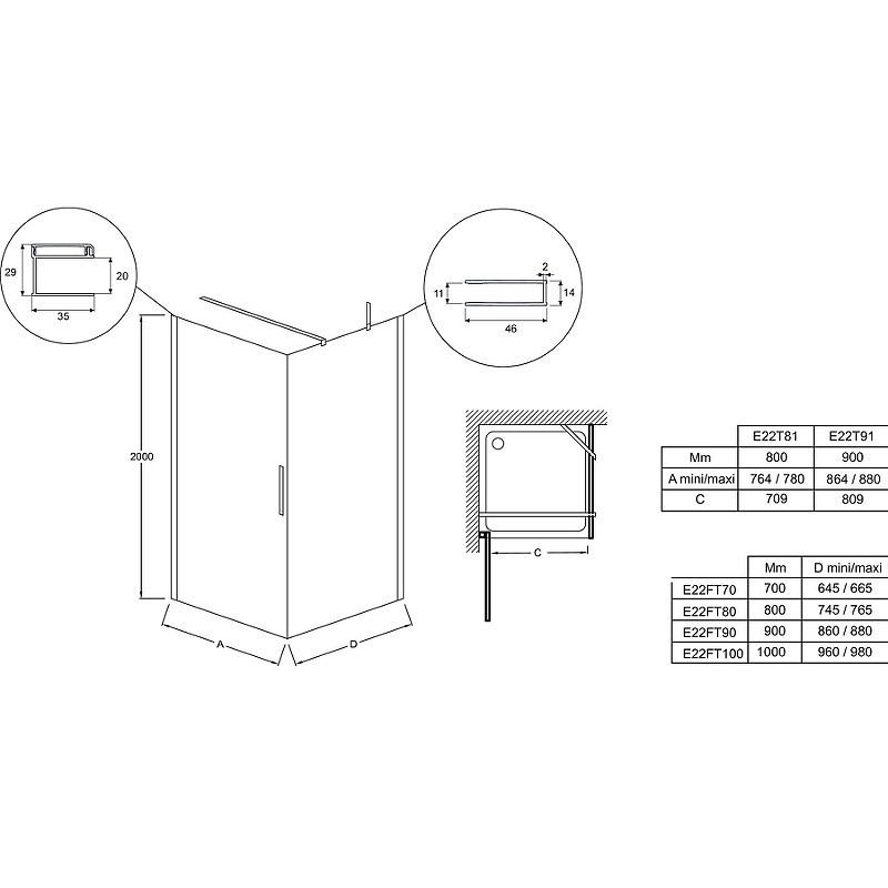 Душевая дверь Contra Black 90х200 E22T90-BL регулируется по ширине, снабжена магнитными замками и широкими стильными ручками.