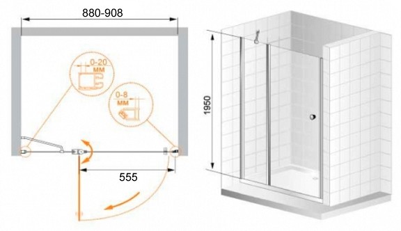 В комплекте поставки: душевая дверь, крепежные элементы, инструкция.