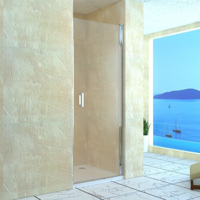 Стеклянная распашная душевая дверь в нишу RGW Leipzig LE-03 90 06120309-11. Универсальная установка открытия двери.