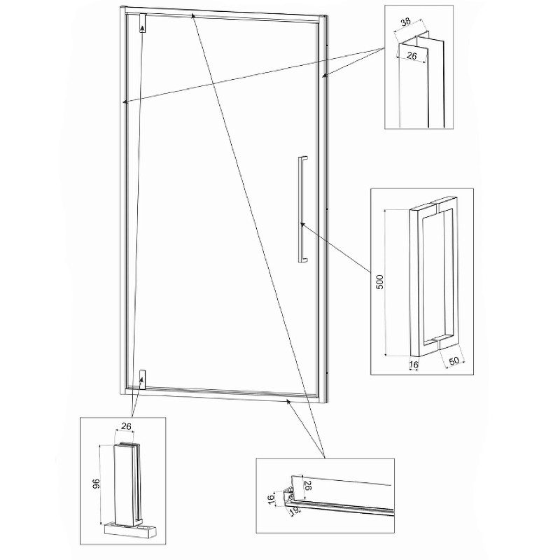 Распашная душевая дверь выполнена из анодированного алюминиевого профиля и закаленного стекла с двусторонней ручкой из нержавеющей стали. Магнитный уплотнитель, плотно прилегающий к профилю, обеспечивает герметичное закрывание двери. Закаленное безопасное стекло устойчиво к значительным механическим нагрузкам, ударам и деформации.