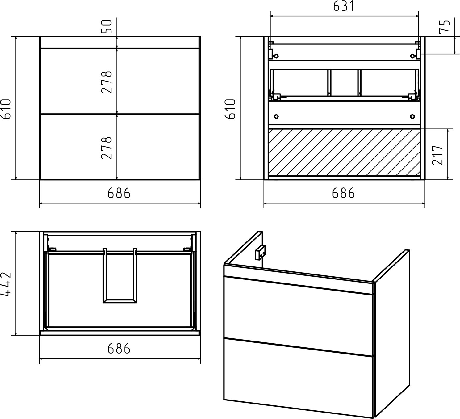 Тумба под умывальник Misty Атлантик-70 П-Атл-01070-011П2Я