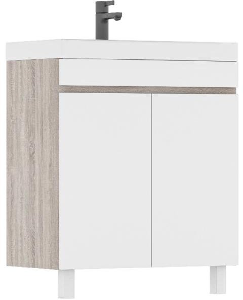 Тумба напольная Volna Conty 80.2D с умывальником Lake белый глянец/дуб сонома