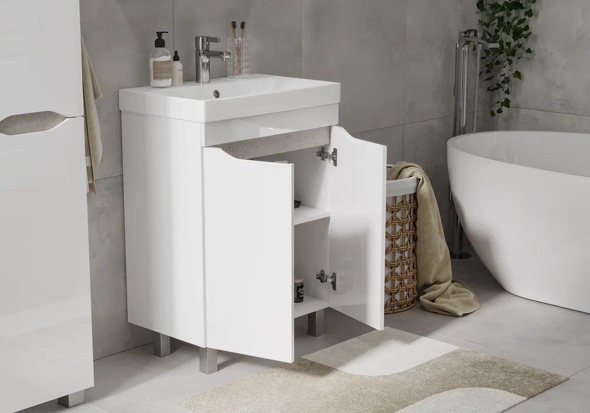 Тумба напольная Volna Lake 60.2D с умывальником Lake 60 в комплекте - это компактное и стильное решение для вашей ванной комнаты.