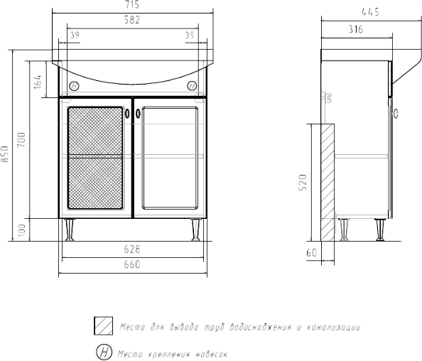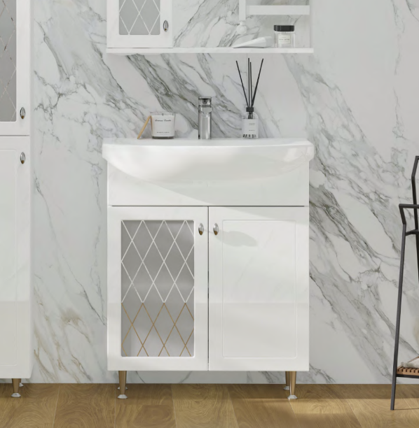 В комплект входит умывальник (фарфор). Это позволяет сэкономить время и средства на подборе умывальника отдельно, а также гарантирует идеальное сочетание размеров и стиля.