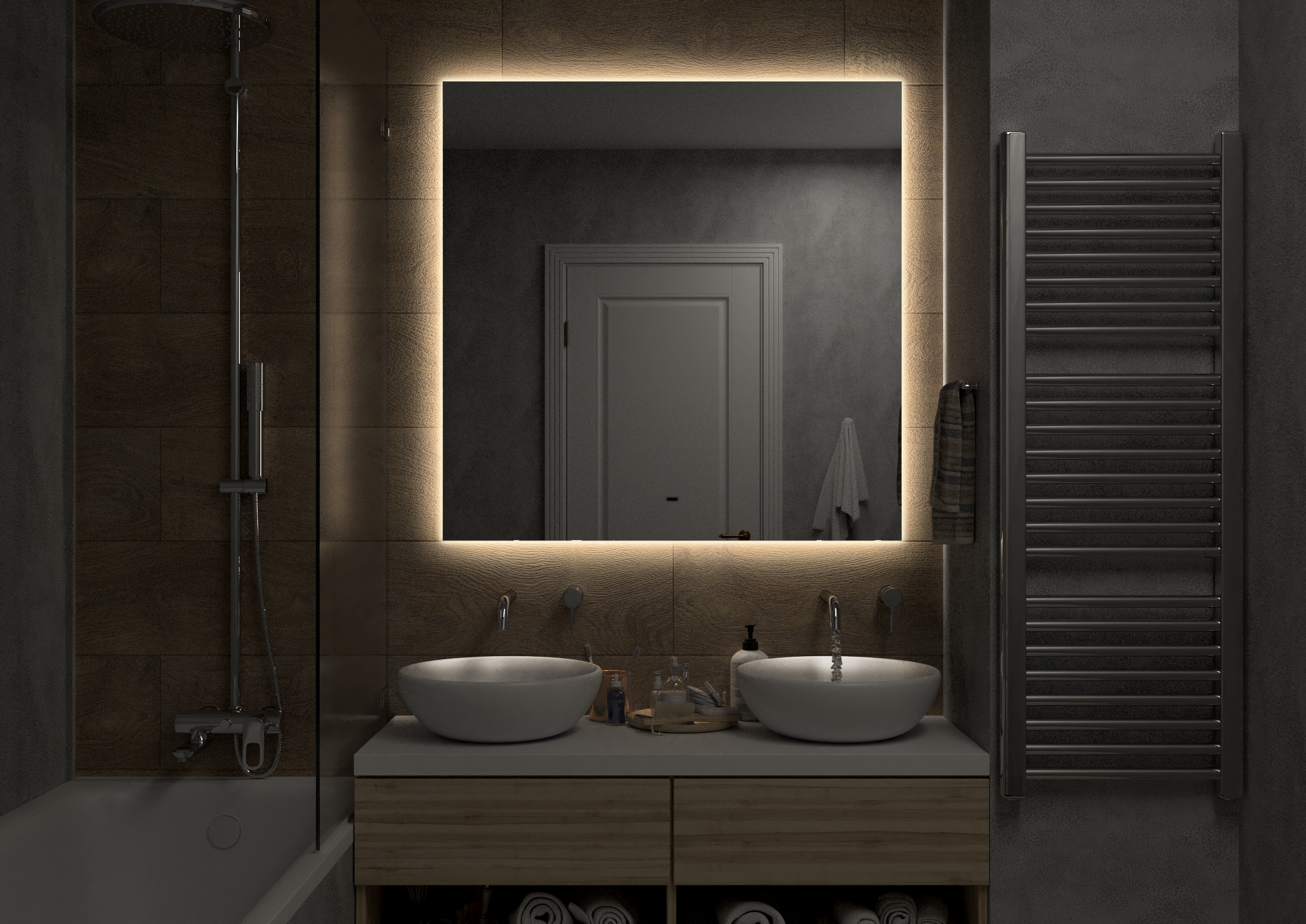 Зеркало из серебряного влагостойкого полотна производства AGS Glass Europe. Модель универсальна, ее можно использовать в любом интерьере.