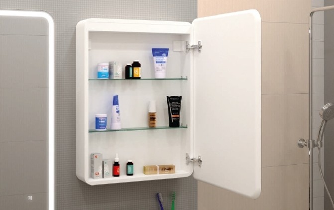 Зеркало-шкаф Elliott размером 600х800 мм с LED-подсветкой (дверка открывается справа) изготовлено из зеркального полотна толщиной 4 мм от ведущего европейского производителя зеркал AGC. Корпус выполнен из МДФ, покрытого пленкой ПВХ. Дверцы шкафа оснащены фурнитурой с доводчиком для плавного закрытия.