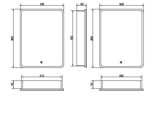 Модель выделяется стильным минималистическим дизайном. LED-подсветка осуществляется светодиодной лентой с плотностью диодов 120 штук на метр и мощностью 9,6 Вт/м, обеспечивая равномерное свечение по всему периметру зеркала. Электрические компоненты установлены внутри корпуса, а край полотна защищен еврокромкой от случайных порезов.