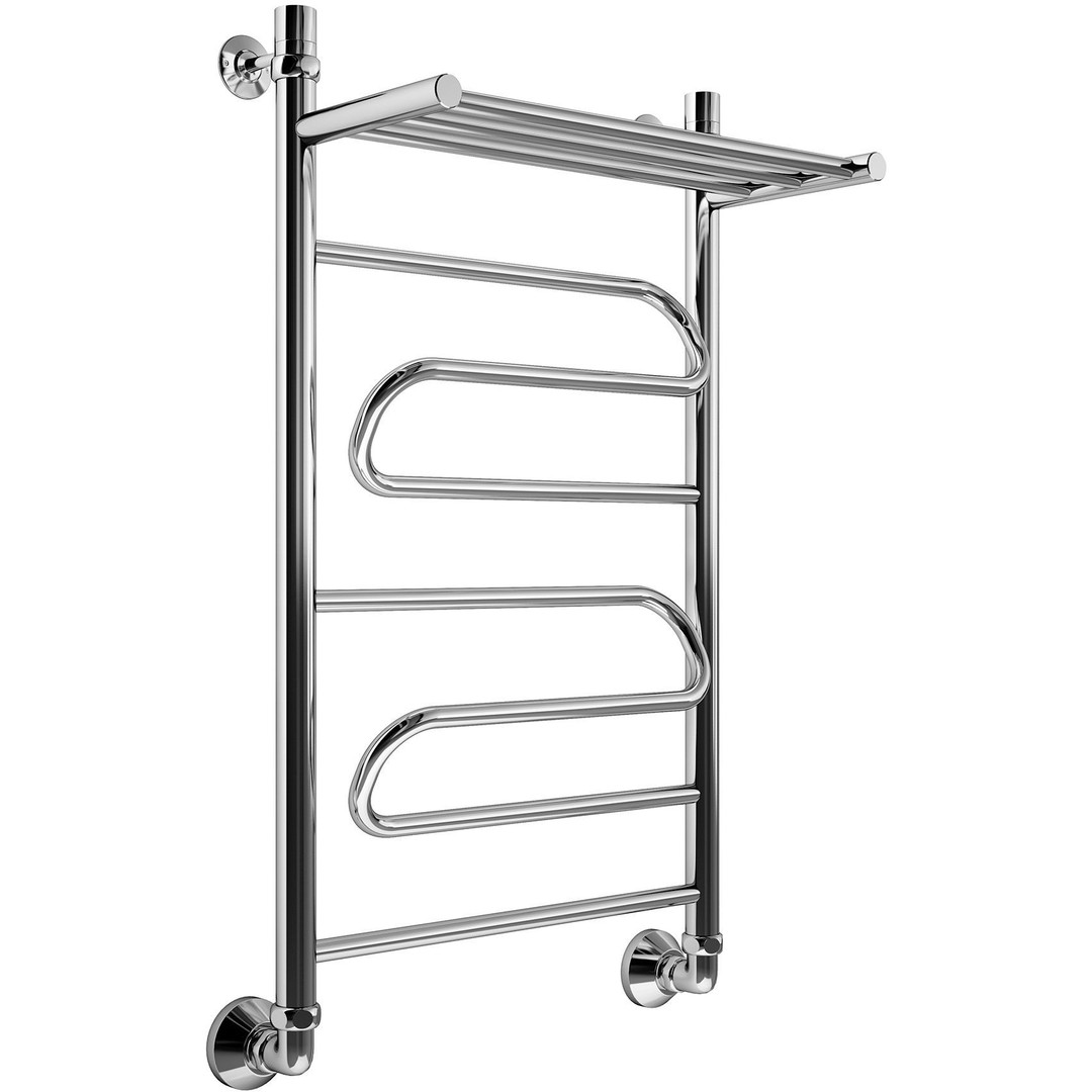 Полотенцесушитель водяной Маргроид Вид 1 с полкой 80/50 нижнее подключение - изящная и современная модель, которая украсит интерьер вашей ванной комнаты, будет поддерживать идеальную температуру в помещении и быстро сушить белье или полотенца.