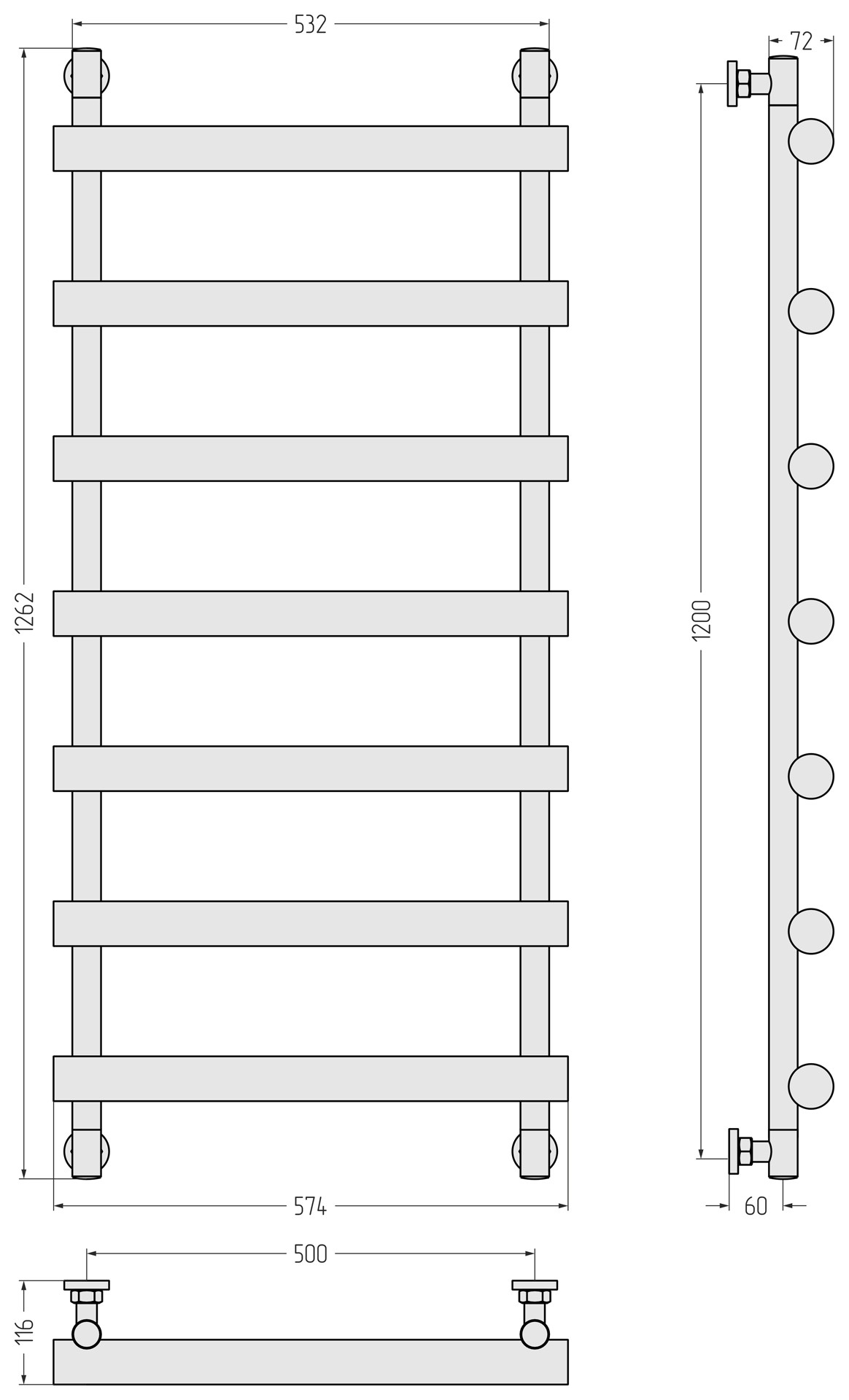 Универсальное подключение - Такая технологическая особенность дает возможность устанавливать дизайн-радиатор тремя способами: нижнее подключение, боковое подключение и диагональное подключение. | Да |