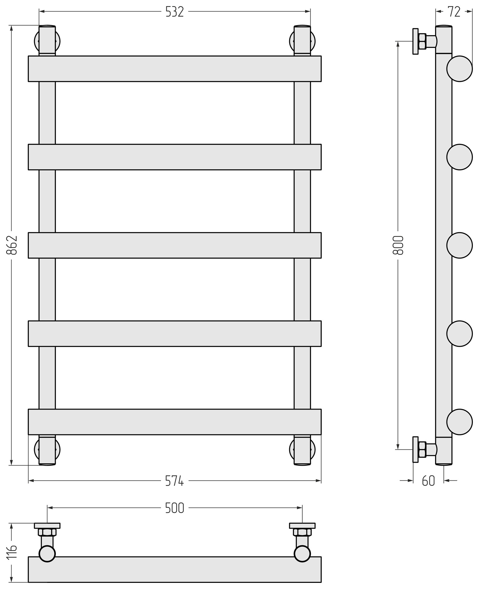 Универсальное подключение - Такая технологическая особенность дает возможность устанавливать дизайн-радиатор тремя способами: нижнее подключение, боковое подключение и диагональное подключение. | Да |