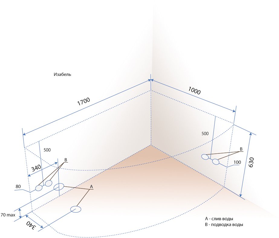 ВНИМАНИЕ! Угол асимметричной ванны Тритон определяется по сливу: если слив слева - ванна левая, если слив справа - ванна правая.