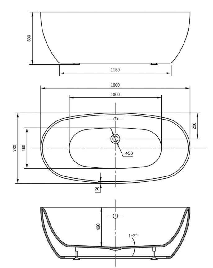 Ванна имеет комфортную эргономичную чашу из высококачественного однородного акрила, который обладает повышенной прочностью и устойчивостью к царапинам и сколам.