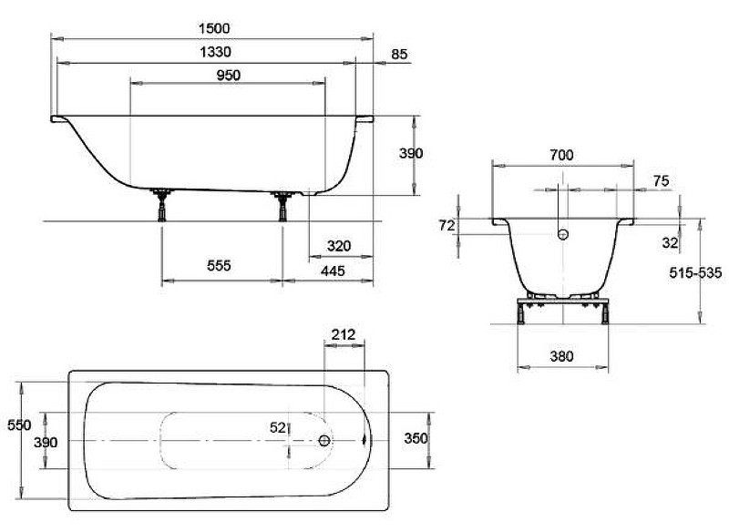 Стальная ванна Kaldewei Eurowa 310 150x70 119612030001 прямоугольной формы.